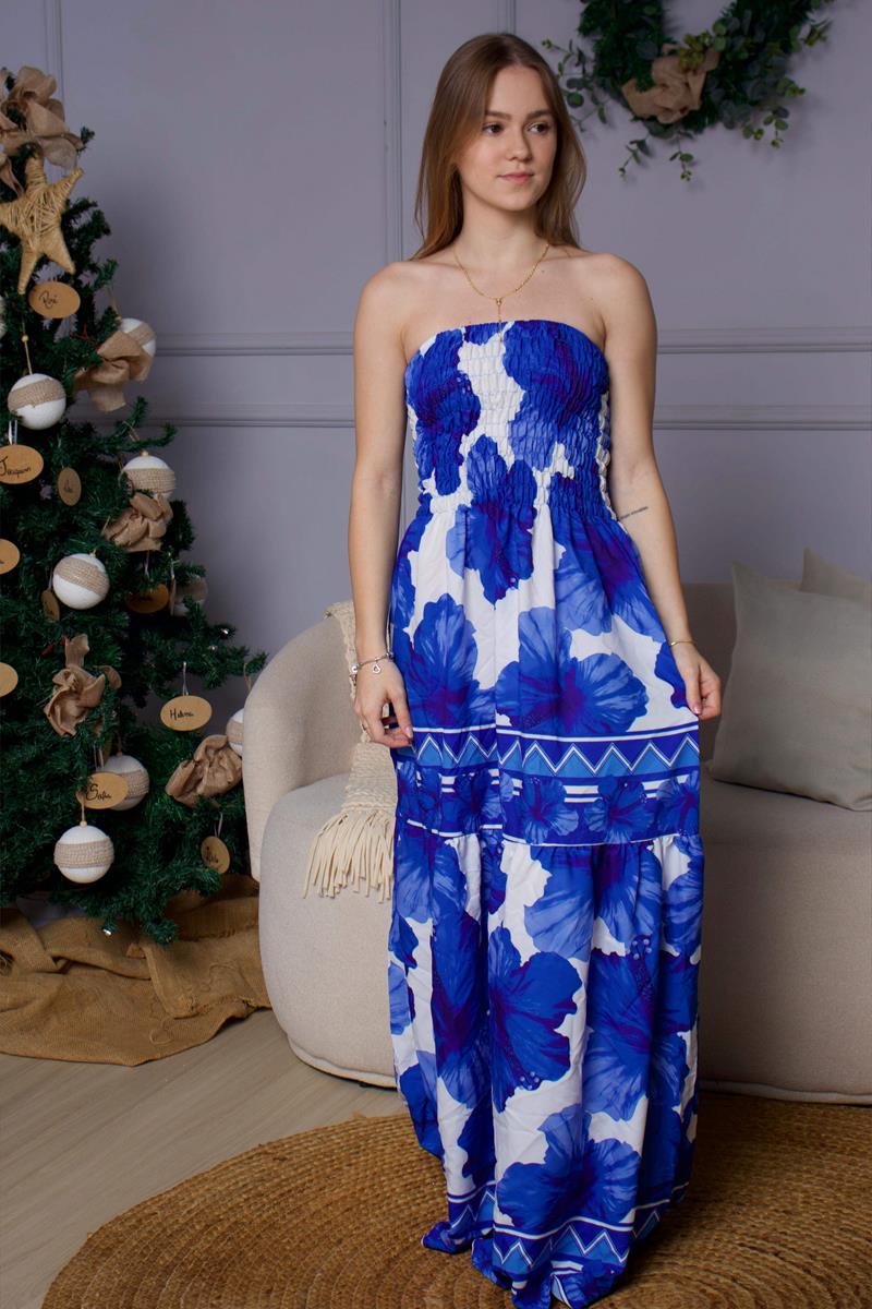 VESTIDO ELASTEX AZUL ESTAMPADO, LEVEZA E PRATICIDADE ALÉM DE VESTIR MUITO BEM NO CORPO.