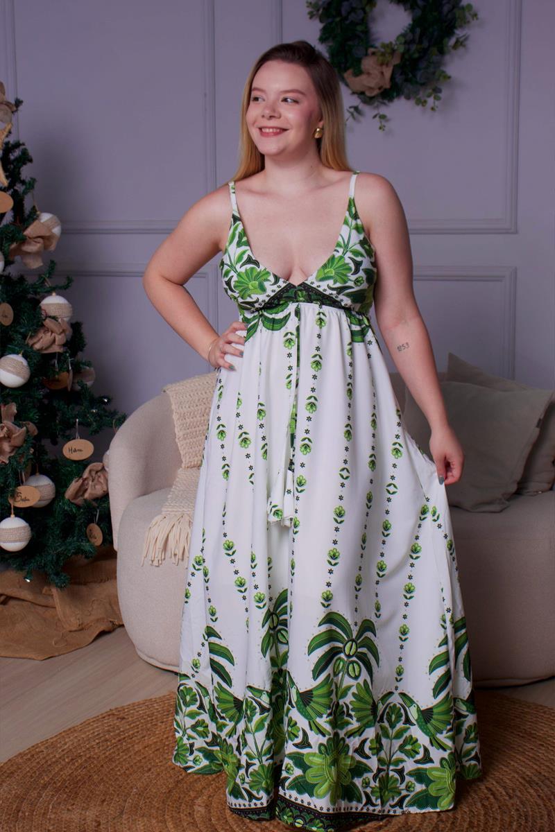 Vestido verde estampado com alça