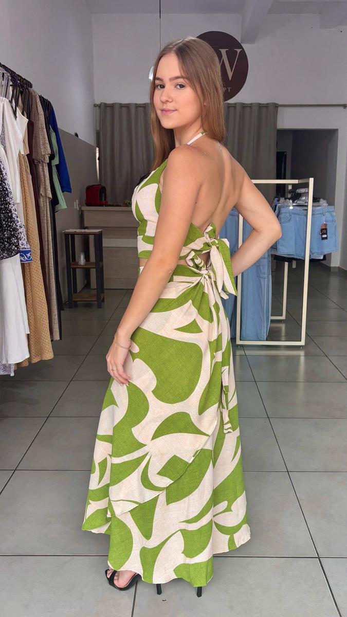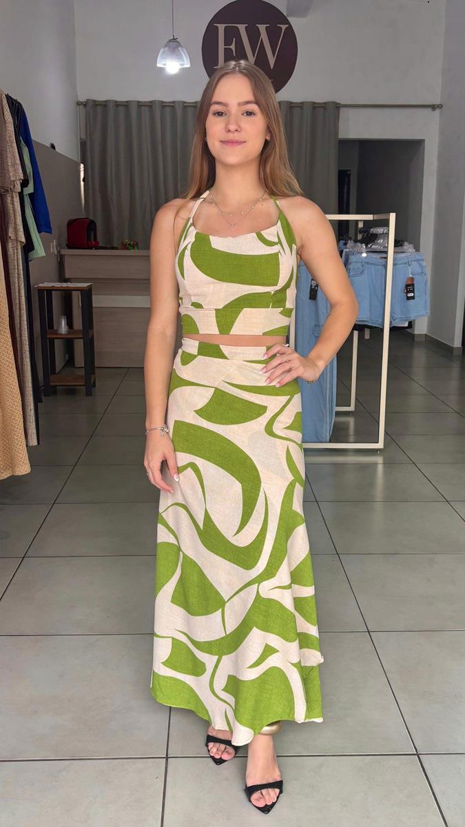 Conjunto Cropped e Saia Envelope.